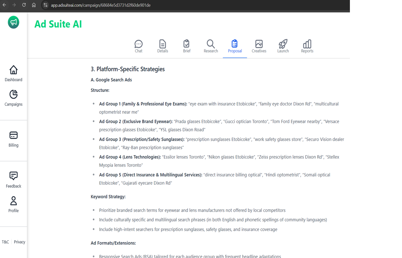 Yes! You have complete control. Once Ad Suite AI generates your campaign brief or proposal, you can review, edit, and approve every detail before launching.